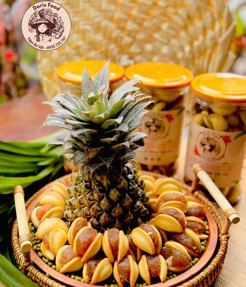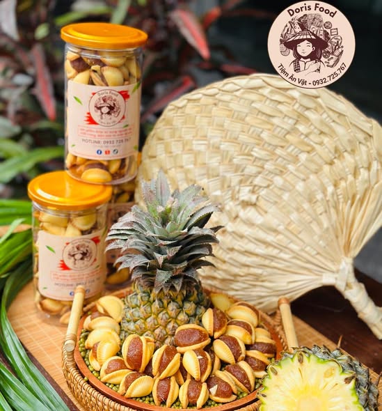 Bánh quy hình vỏ sò xinh xắn, lớp bánh giòn nhẹ, bên trong là nhân khóm dẻo thơm, sên kỹ nên không gắt – không ngọt gắt, ăn rất cuốn.