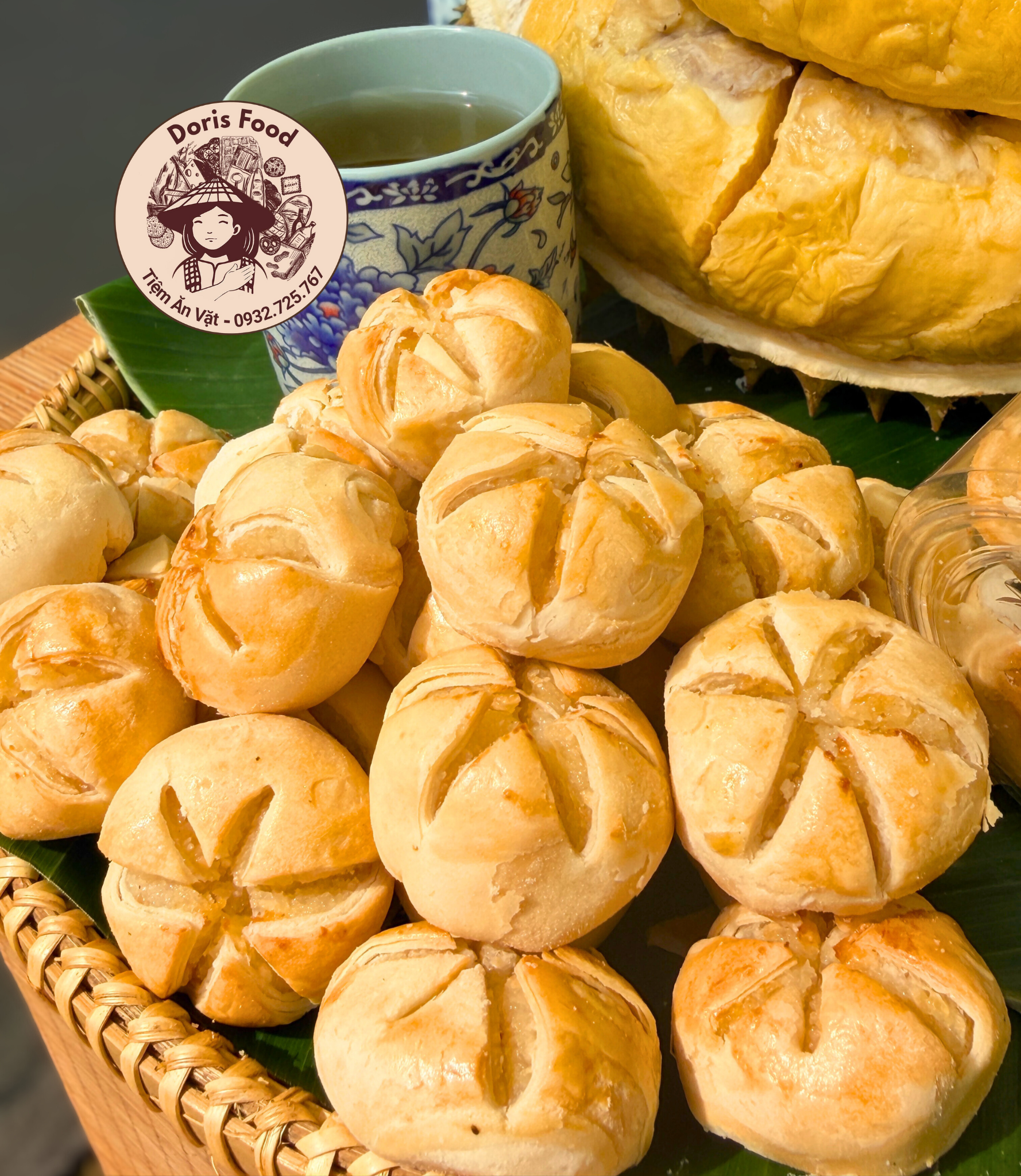 💛 Phần nhân bên trong là sự hòa quyện tinh tế giữa đậu xanh mịn màng, cơm dừa béo thơm và chút sầu riêng thoang thoảng – tạo nên vị ngọt dịu, không gắt, ăn hoài không ngán!