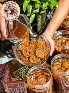 CHANH ĐÀO có vị chua, tác dụng thanh nhiệt, trừ ho, viêm họng, lợi tiểu tiện , kháng viêm , tăng cường sức đề kháng vị nhẫn nhẹ tự nhiên từ vỏ chanh kết hợp với mật ong và đường phèn