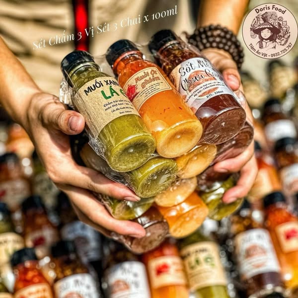 - Mọi thứ gói gọn trong SÉT CHẤM 3 VỊ độc quyền nhà Doris Food chấm gì cũng ngon, 1 sét 3 chai nặng tầm 500g - 520g bảo quản bình thường ở ngoài thoải mái luôn nha. Set mới này em thay Muối Rau Râm bằng Muối Ớt Xanh Lá É nha ?